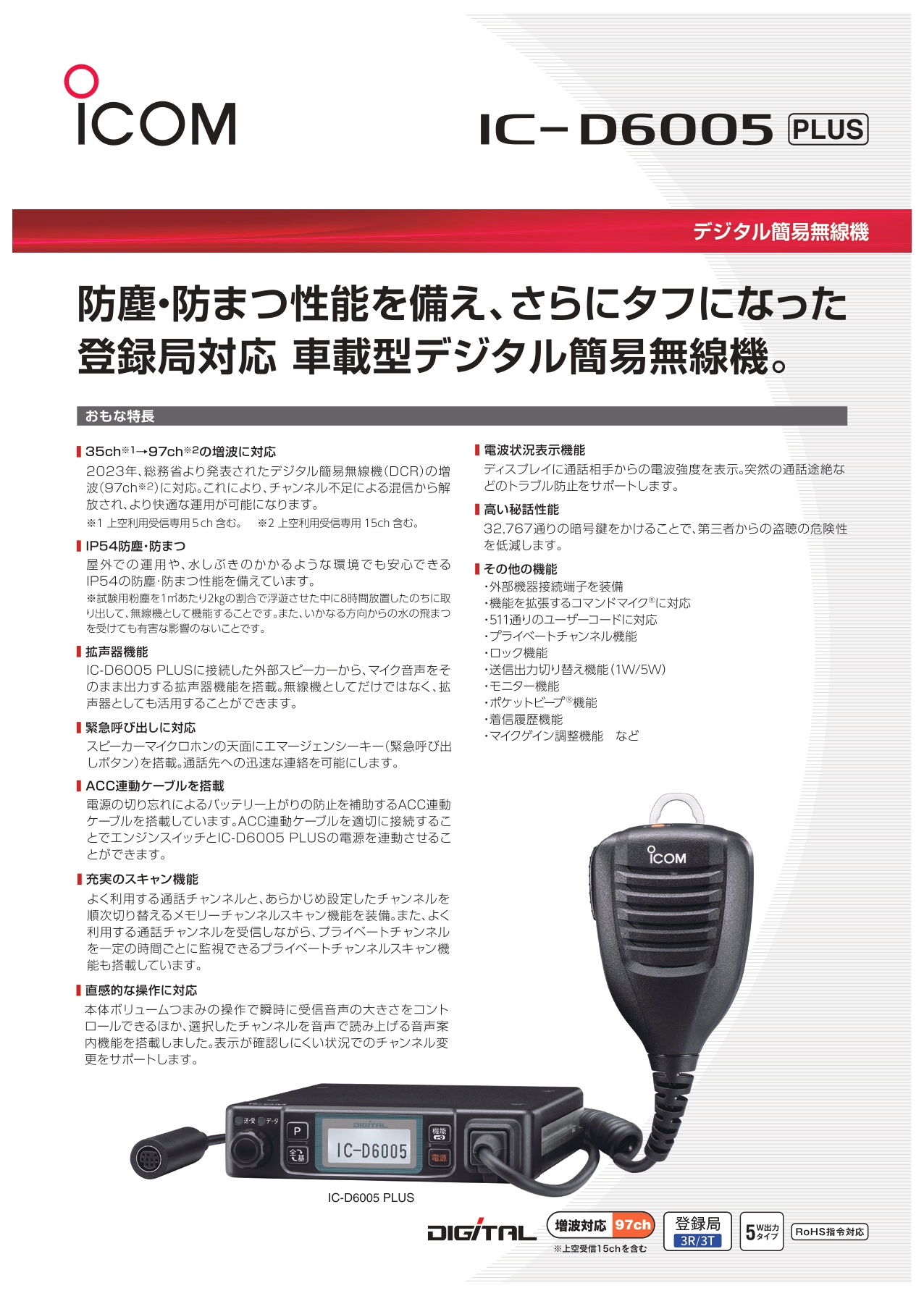 インカムTOP › アイコム IC-D6005 PLUS 簡易業務用無線機 › › IC-D6005PLUS_page-0001 投稿記事は1件もありません! トランシーバーのレンタル・購入をご検討の方はお気軽にご相談ください 提案を受けるMAIL FORM